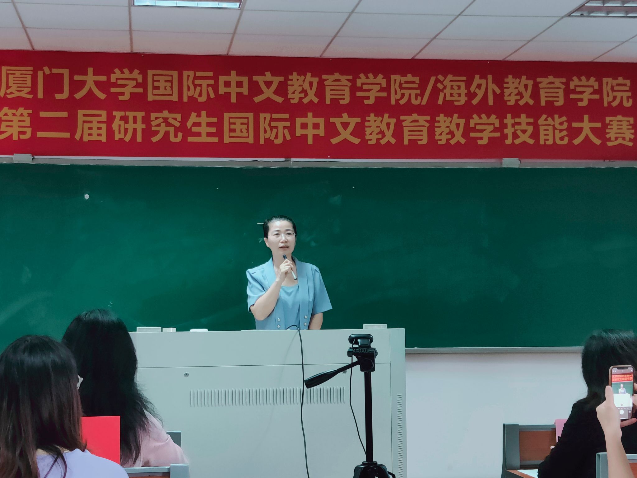 6月30日下午,国际中文教育学院/海外教育学院第二届研究生国际中文教育教学技能大赛在翔安校区坤銮楼C202成功举办,本次比赛由孟繁杰副教授主持,邀请了何宏耀、马杜娟、张灵芝、赵蓉、党瑞霞等五位有丰富一线教学经验的年轻优秀教师担任评委。各年级参赛选手们各显其能,经过一番精彩的教学比拼,2021级研究生王惠芳同学一举夺魁,荣获一等奖,肖婧宸和陈敏荣获二等奖,吕策、甘娟娟、王会蒙荣获三等奖。