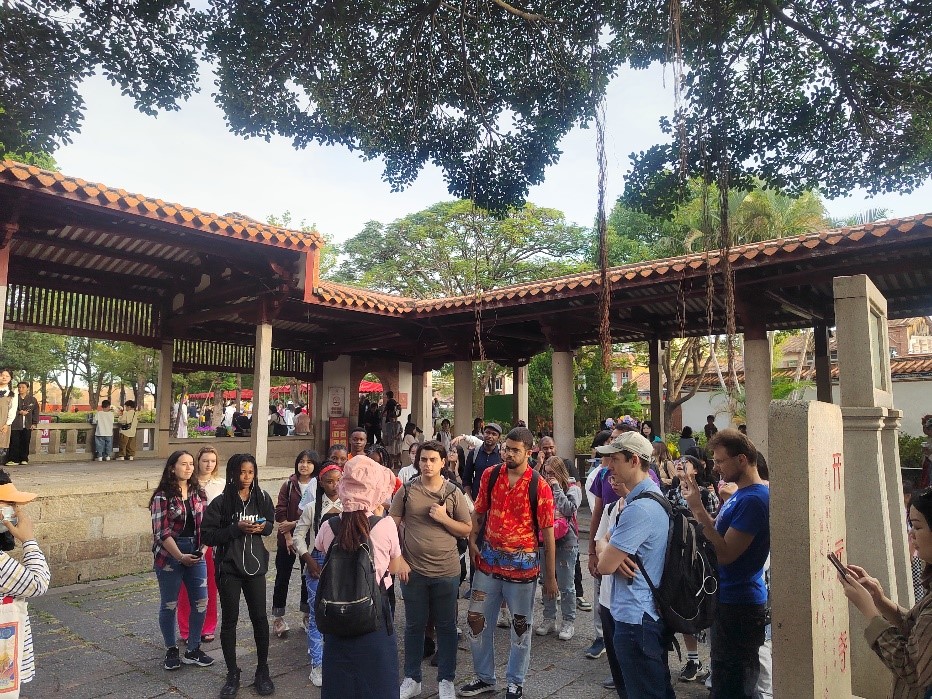 同学们参观了中国闽台缘博物馆。此馆展示了两岸同文、同根、同文化的历史亲缘。多样的陈列手法,展现了闽台两地共同的民俗风貌和乡土文化,新春闹上元、端午竞舟鼓、中秋博饼等生动的民俗画面,使留学生进一步地了解到闽台两地的传统文化趣味。此外在《汉字主题展》中,通过各类图片、实物、视频讲解等,描绘了汉字的发展演变和艺术形象。横撇竖捺,形态万千,生动展现了中国汉字文化的魅力,也丰富了留学生们关于汉字的知识。
