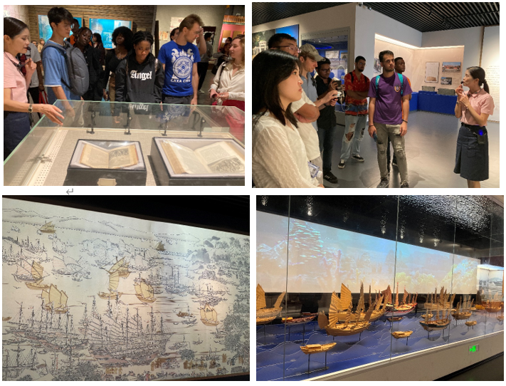 文化之旅第一站,同学们参观了泉州海上交通史博物馆。主场馆如同一艘扬帆远航的双桅帆船,生动诠释了其展览主旨。它以刺桐港(泉州港)历史为轴心,以独特的海交文物和珍贵的历史料叙述了中国古代海洋文化的发展与变迁。在“刺桐:古泉州的故事”展厅中,通过各类文图、视频、场景等勾勒出泉州海洋文化的繁荣画卷。在“中国舟船世界陈列馆”内,则展出了中国历史上的各类舟船模型,从历代战船、古代使节的出国使船,到举世闻名的郑和下西洋的庞大船队,再到全国各地独具特色的各种实船,种类丰富,类型齐全。在讲解声中,同学们对于这一段海上交通发展史和东西方历史文化交流之旅有了进一步的认知,对于千年前各国文化已在此交相辉映的景象、以及古中国的船舶技艺与海上民俗风情纷纷表示感叹。