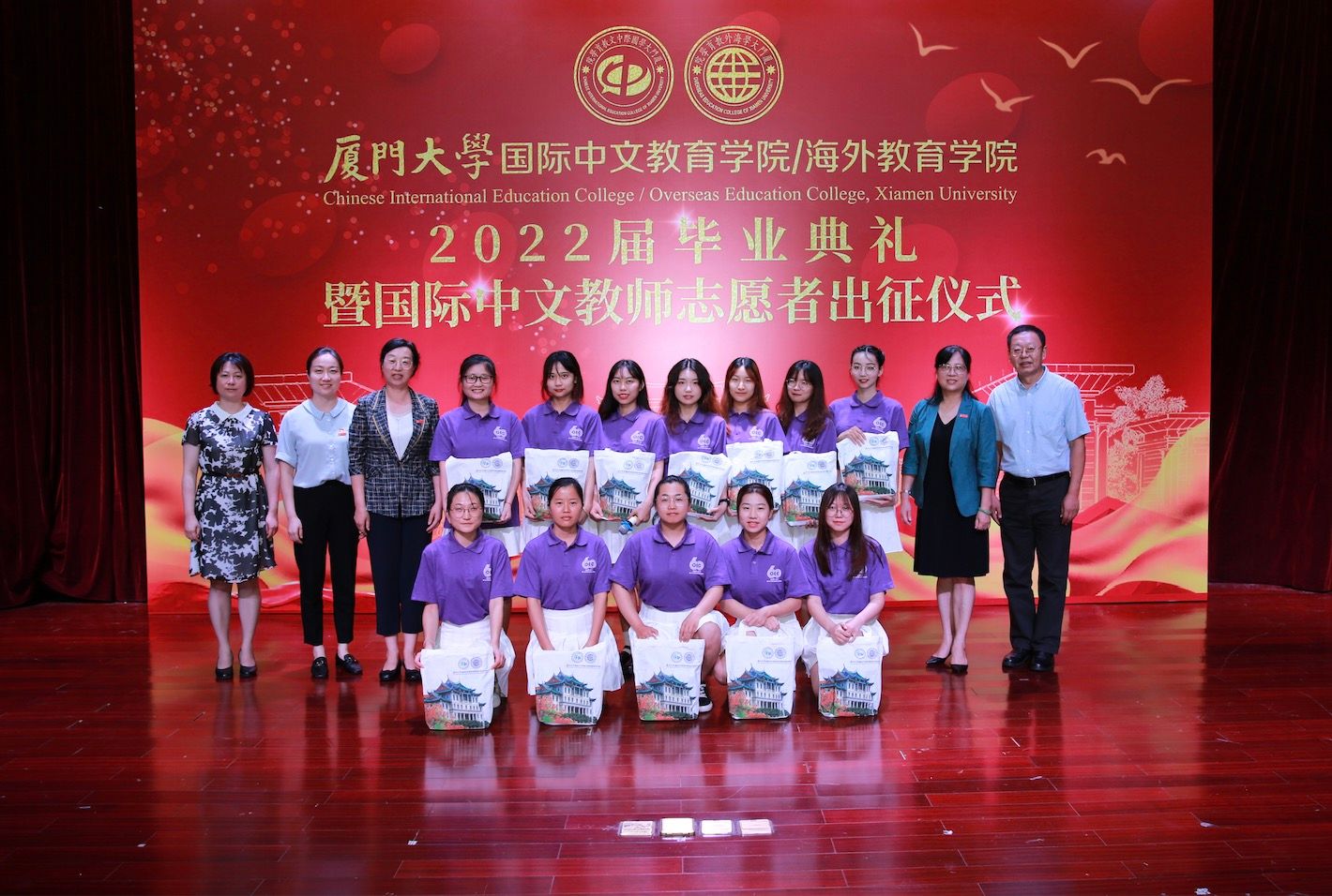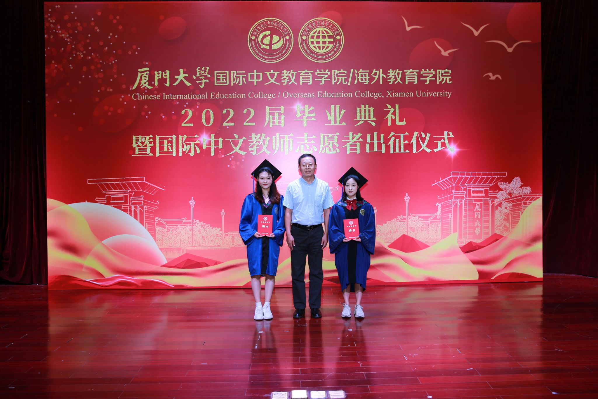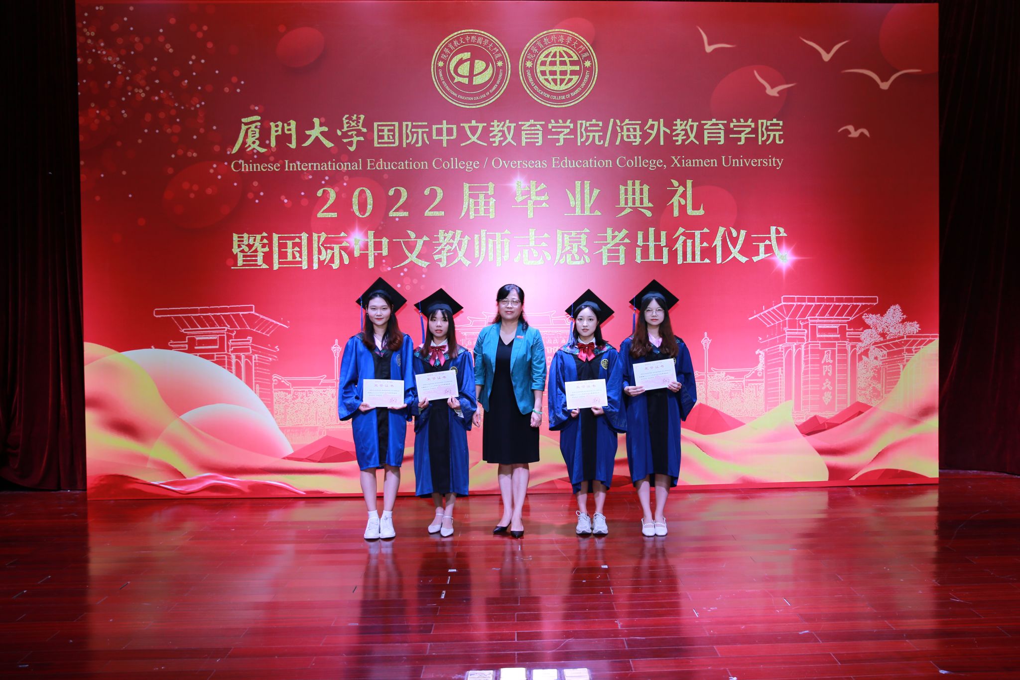 6月24日下午,厦门大学国际中文教育学院/海外教育学院于坤銮楼B102多功能厅举行2022届毕业典礼暨国际中文教师志愿者出征仪式,为方便境内外不在校的毕业生观礼,学院还在线上平台设置了分会场。院党委书记范丽、院长陈志伟、副院长耿虎、副院长潘超青、学院教师代表和2022届全体毕业生以及即将出征的国际中文教师志愿者参加典礼。本次典礼由学院党委副书记吴荻主持。
