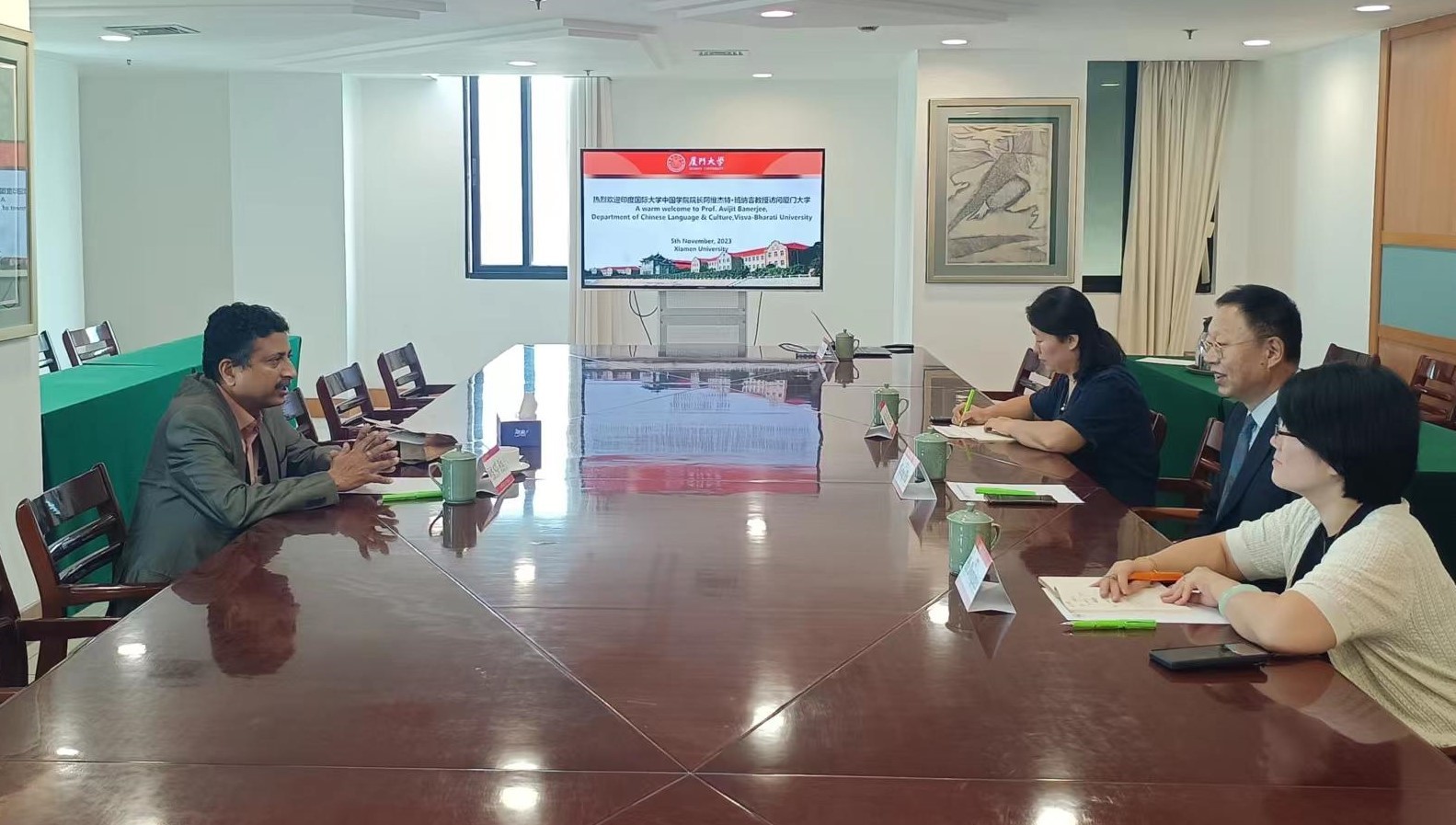 阿维杰特表示,很荣幸能够访问美丽的厦门大学,感谢国际中文教育学院的热情接待。他提到,中国与印度有着两千多年的友好交往史。由印度著名诗人泰戈尔创办的印度国际大学旨在密切世界各国之间的科学与人文交流,该校设有许多专门研究机构,其中艺术学院和东方语言学院对发掘东方文明作出了贡献。该校中国学院为印度第一个专门研究中国文化的机构,旨在弘扬东方文化,促进中印文化交流,是中印两国间友好交流的重要纽带,也是印度中国语言文学研究和汉语人才培养的重要基地。他希望向印度的学生介绍厦门大学,同时他还了解了我校长短期项目,以及奖学金项目情况,同时他热情邀请厦门大学、国际中文教育学院到印度国际大学访问,也欢迎中国学生到印度国际大学留学。