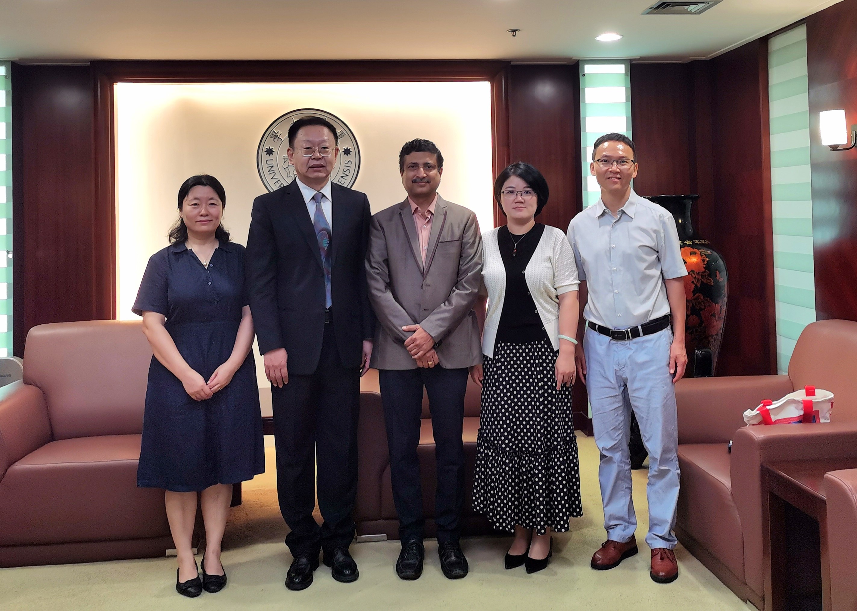 11月5日,印度国际大学中国学院院长阿维杰特•班纳吉(Avijit Banerjee)教授来访,我校国际中文教育学院/海外教育学院副院长耿虎会见来宾,华文系副主任郭建花、中外语言交流合作中心副主任何冬梅等陪同参加座谈。