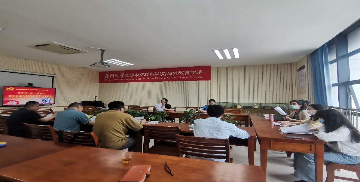 根据院党委工作安排及党委党校的工作要求,国际中文教育学院/海外教育学院于2022年4月24日下午15:30-16:30在坤銮楼B409召开党支部书记工作例会暨学生党支部书记、副书记、委员党务工作能力提升班学习交流会。学院全体教工党支部书记、学生党支部书记及委员出席了本次会议。