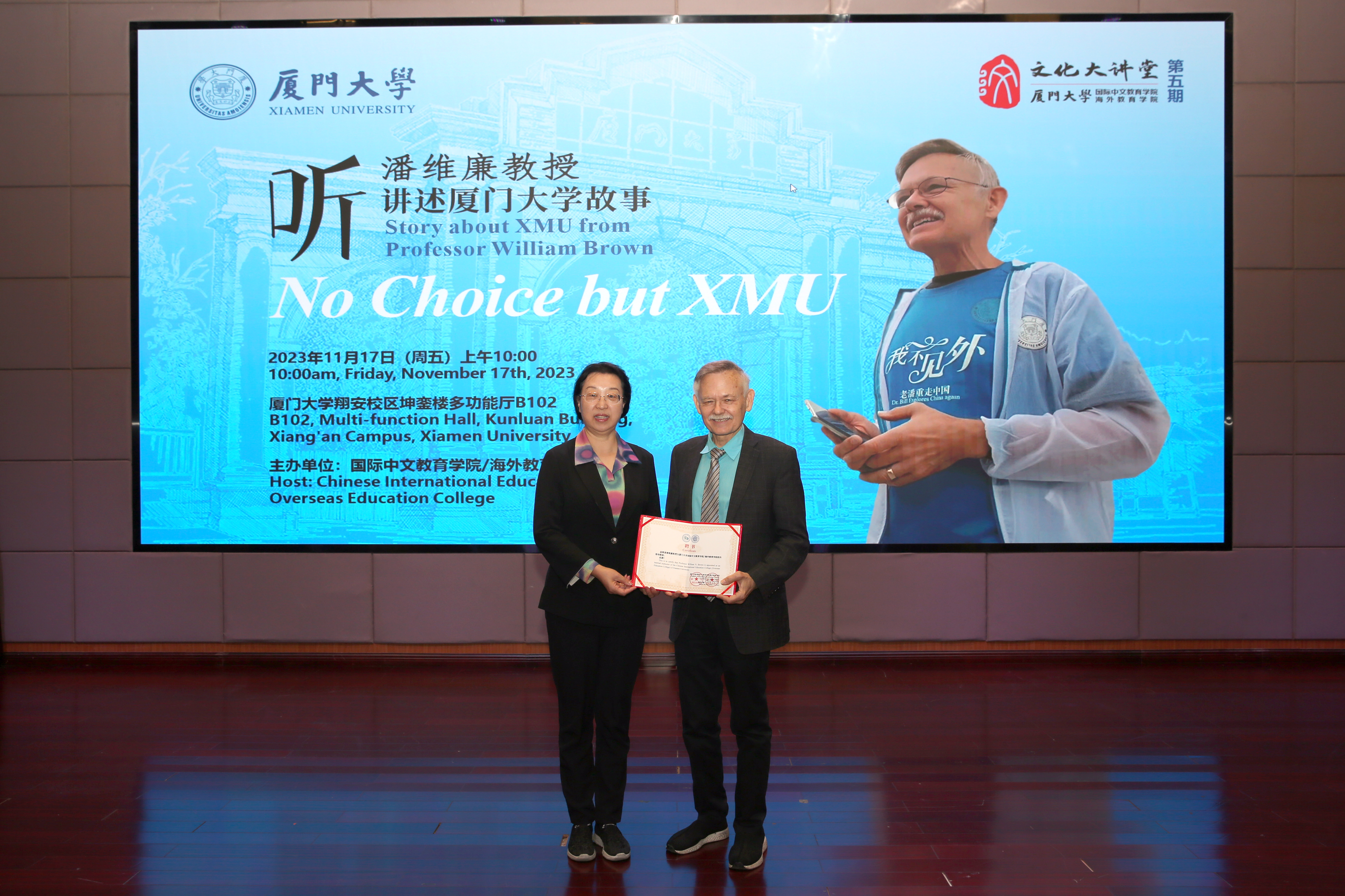 潘维廉教授作主题分享。他以活泼有趣的方式描绘了自己在华三十余年间,从遇见厦门到行遍中国的足迹与历程。从与鹭岛的初次邂逅到与神州的不解之缘,潘维廉从自身经历出发,叙述了从认识中国到爱上中国,从了解中国文化到传播中国文化的心路历程。他分享了在厦门大学的灿烂篇章,也让大家了解到他与厦大的故事情缘,以及厦大辉煌的发展历史。多年来,潘维廉教授通过写信、著书、拍摄视频等方式持续向世界分享他在中国的所见所闻、所得所感,将对中国文化的热爱,汇成一卷卷动人的诗篇,至今已出版介绍中国的中英文书籍三十多部,作为中国蓬勃发展的亲历者、参与者、见证者,同时,他亦成为中国故事的记录者、讲述者、与传播者,向全世界展示真实、立体、全面的中国。