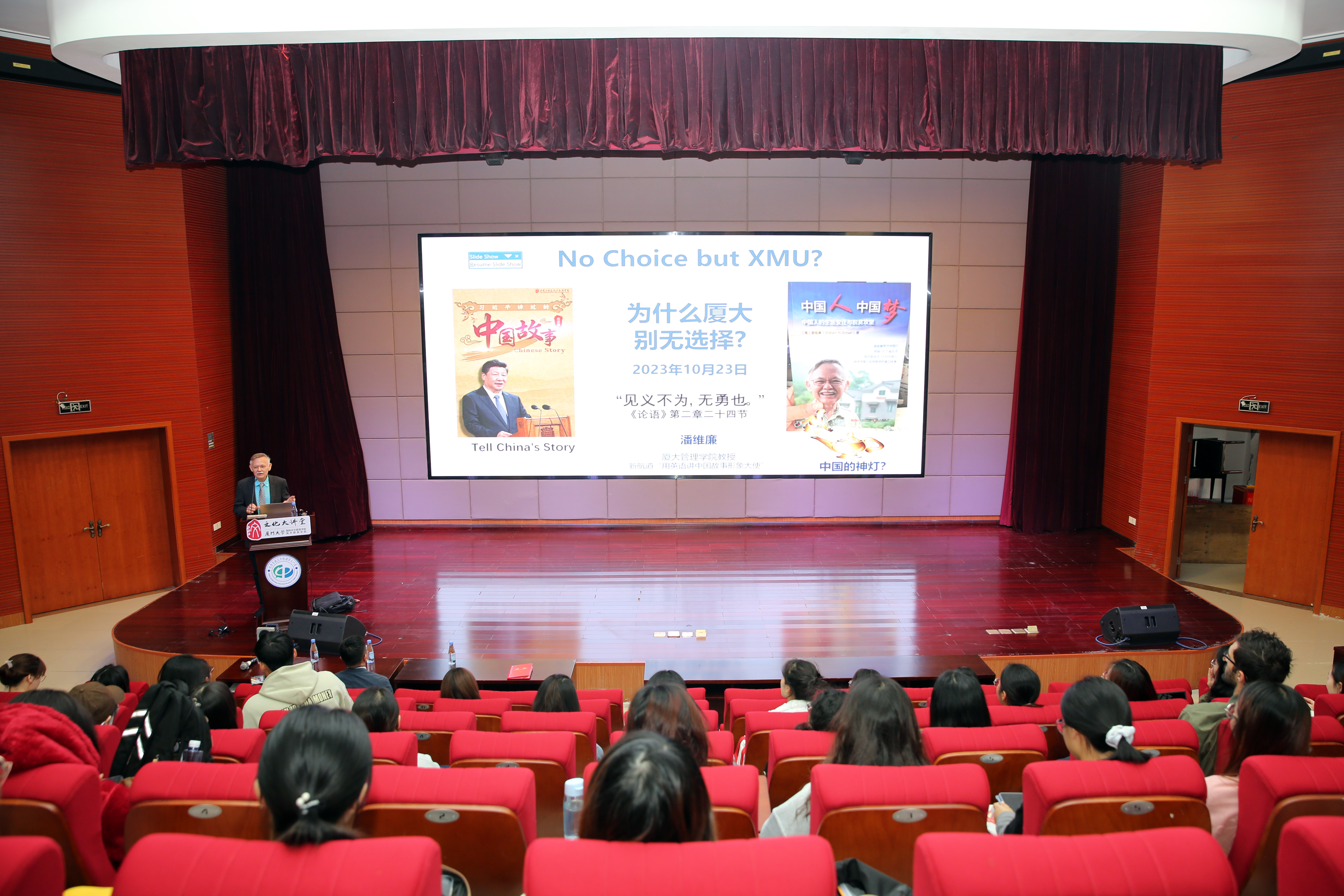 11月17日上午,国际中文教育学院/海外教育学院第五期“文化大讲堂”于翔安校区坤銮楼B102多功能厅举行。本次活动邀请厦门大学管理学院教授潘维廉作“No Choice but XMU”的文化专题讲座。国际中文教育学院/海外教育学院党委书记范丽出席,学院学工组、部分行政教师、中外学生约80人参加活动。活动由学院党委副书记林明华主持。