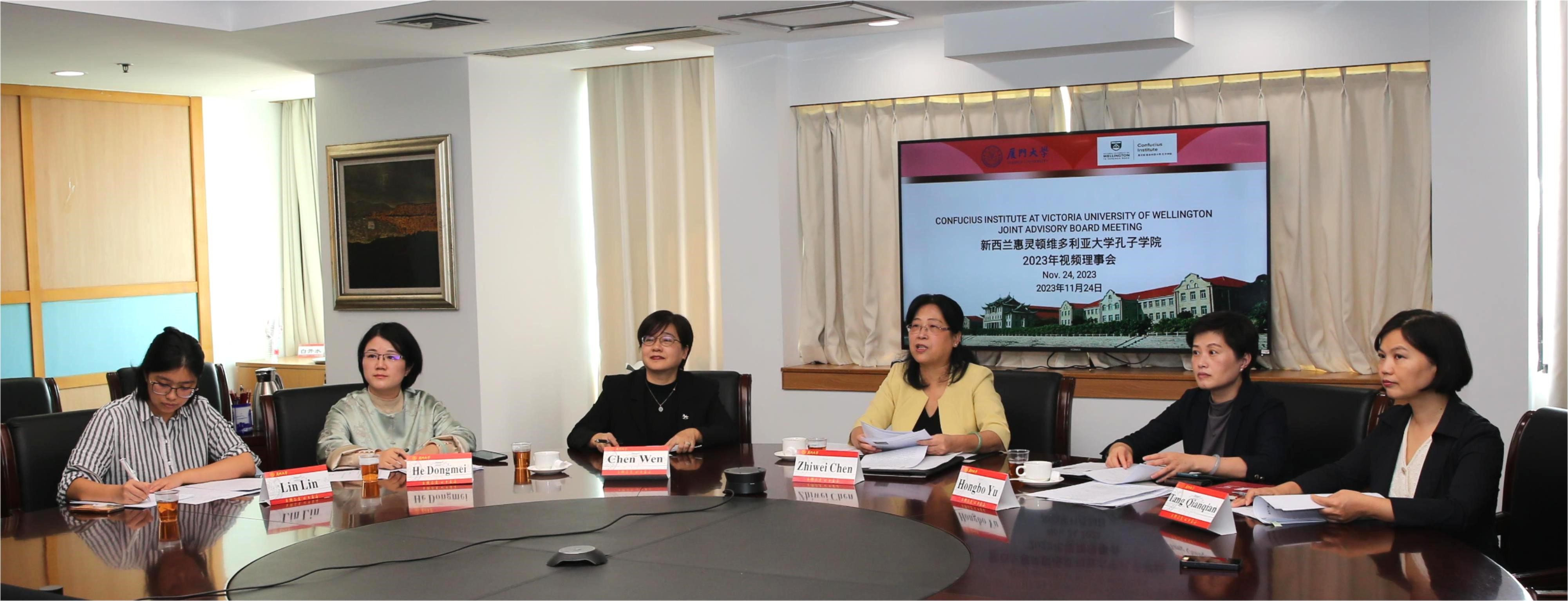 11月24日上午,厦门大学副校长史大林与惠灵顿维多利亚大学副校长拉维尼娅•希金斯(Rawinia Higgins)进行视频会晤,双方就孔子学院的建设发展以及两校交流合作等方面交换意见。视频会晤后,惠灵顿维多利亚大学孔子学院年度理事会随即召开,中国驻新西兰大使馆教育参赞董志学应邀出席会议,惠灵顿维多利亚大学国际处处长、孔院理事长邵俊伦(Roger shew),孔院外方院长白若兰(Adele Bryant),罗托鲁瓦男子高中校长克里斯•格林特(Chris Grinter),厦门大学海外办学办执行主任、国际合作与交流处副处长(主持工作)余宏波,孔院中方院长赵叶珠,候任中方院长陈雯以及中外语言交流合作中心相关工作人员一同参会。会议由厦门大学国际中文教育学院/海外教育学院院长陈志伟主持。