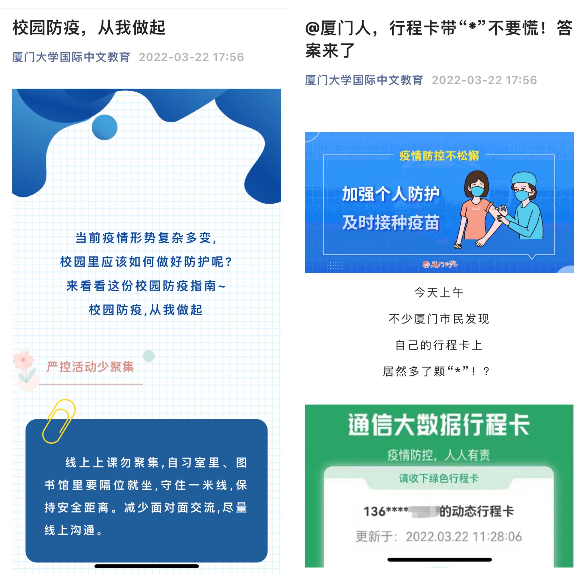 诚挚问候传暖意 深情关怀暖人心。3月19日,学院院长陈志伟、党委副书记吴荻带领学工组成员和学生干部一起走访了学生宿舍,并为每位同学送去医用口罩等防疫物资。学院第一时间通过微信公众号、学院网站、微信群、LED电子品等,向师生学生分类推送各项疫情防控要求、科学防疫知识、在校生活指南和心理咨询信息等,特别针对留学生推送英文咨询,缓解师生焦虑和担忧。3月18日,作为翔安校区驻楼工作组的第12小组深入学生宿舍,与学生谈心谈话,传达学校疫情防控要求。学工组带着春风而来,尽最大的努力关爱每位学生,为疫情防控坚守自己的“责任田”。