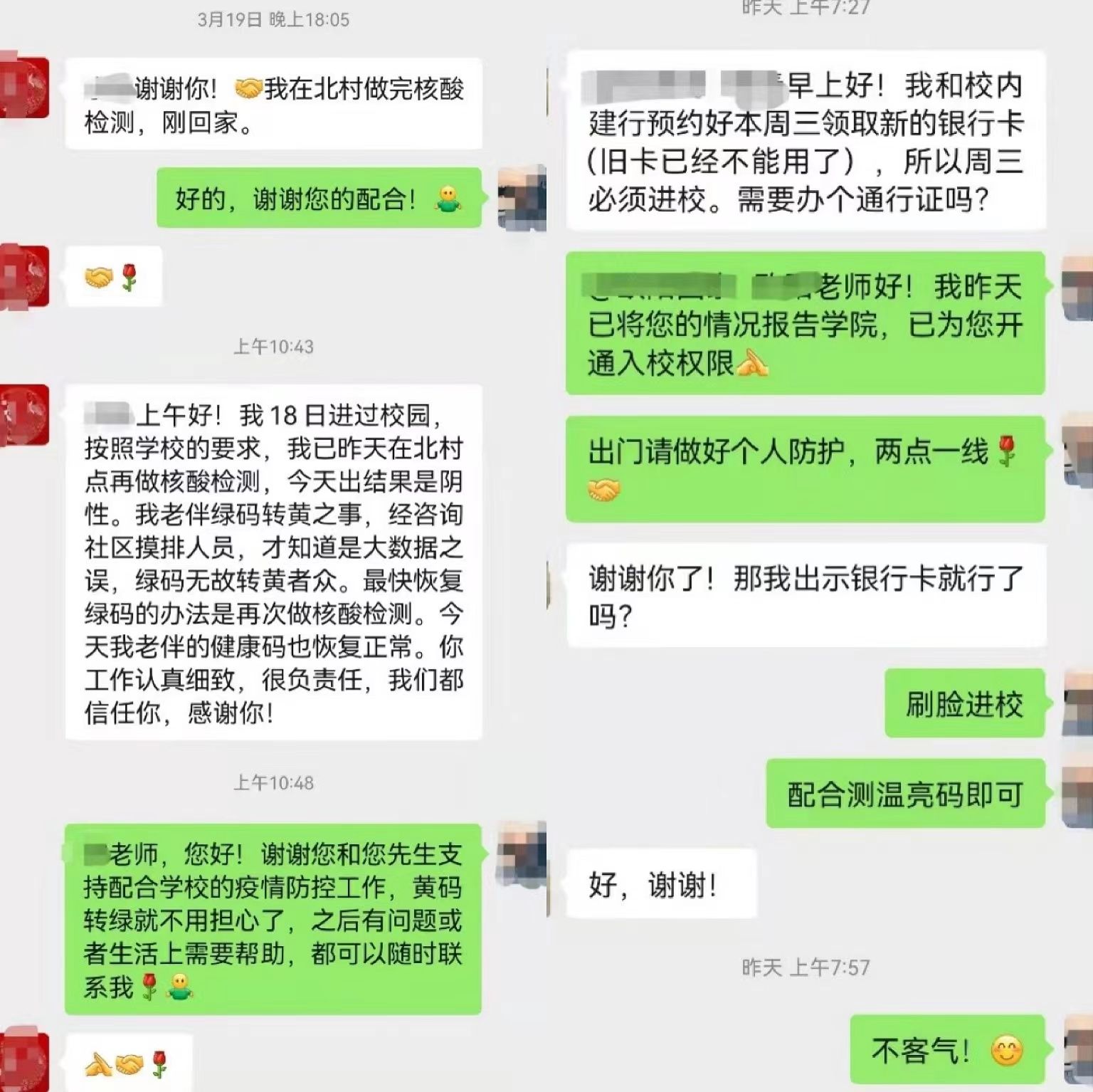 传递温暖慰问,用心用情保安康。3月14日以来,学院部署专人负责离退休老同志防疫工作。网格员通过微信、打电话等方式逐一核实摸排离退休同志情况,准确掌握离退休同志的出行轨迹。疫情期间,有的老同志们的信息接收不畅,电话打不通,网格员及时多方联系其亲属及所在社区,克服困难,及时了解老同志的出行轨迹、生活起居、身体和心理状况等,做老同志们的“贴心人”。特殊时期,虽然不能面对面,但是学院随时准备提供帮助和支持,为老同志送去学院的关怀和关爱。