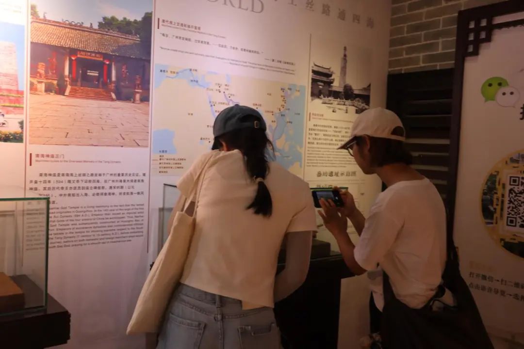 为了更好地了解海上丝绸之路的历史意义与现代价值,实践队成员前往广州多个博物馆及历史遗址,近距离感受海上丝绸之路的魅力。实践队成员通过参观南海神庙、黄埔古港遗址、南越文王墓、南越王博物院等地,深入探究了广州这座中国唯一自建城至今两千余年来始终对外开放的港口城市不同时期海上贸易的辉煌历史。在黄埔古港遗址处亲见的阔阔真公主号仿古船,以及粤海第一关纪念馆等“海丝”遗址,让人不由感慨遐想当时此地“洋船泊靠,商贾云集,殷实富庶”的繁华景象。书中记录的近代广州高度发展的商贸交易场景。唐宋时期,随着海上贸易的不断发展,国内的大批货物向广州聚集,经过广州输往世界各地,海外的货物也通过广州源源不断的流入内地,这一时期的广州已经成为名副其实的中外贸易中心枢纽,彰显了千年商都的重要地位。
