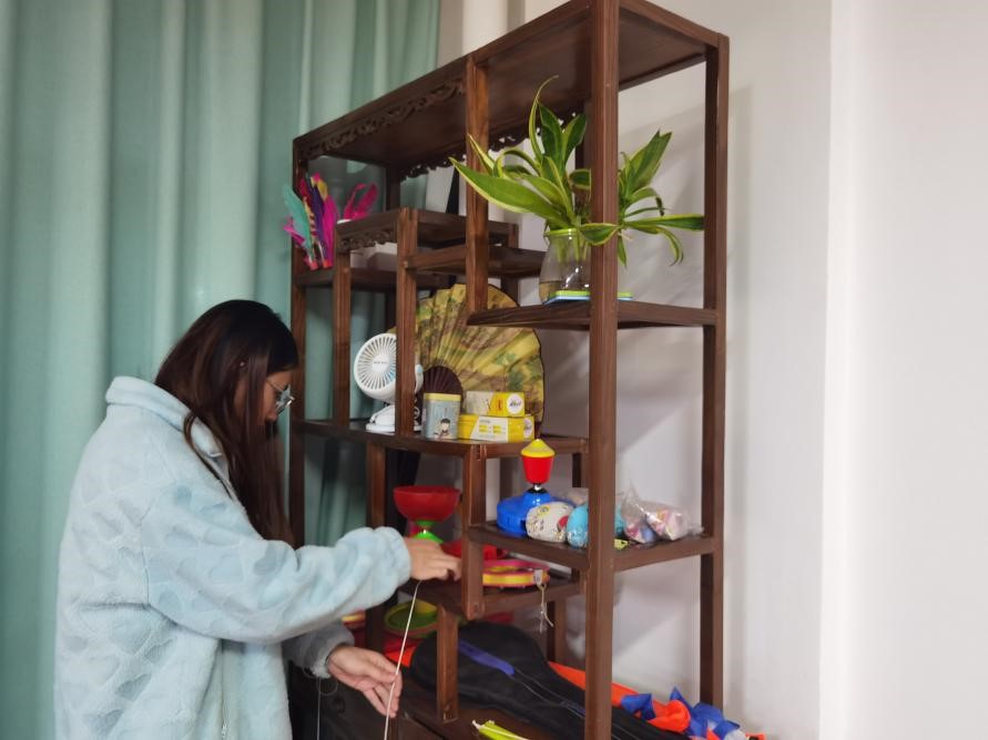志愿者每日早晚轮流值班,负责管理社区秩序,包括制止不文明现象、日常卫生清理等。国光2“一站式”同时作为中华文化体验室,布置有诸如古筝、剪纸、结绳、书法等中华优秀传统文化体验用具与文化装饰,以润物无声、潜移默化的文化氛围将其打造建设为优秀传统文化体验空间。因此,志愿者也负责进行文化物资的登记、取用、协调等相关工作。此外,志愿者在岗期间亦协助处理一些学生突发事件等,做到“常事常办、急事急办”,充分展现出青年志愿者的工作本领和责任担当。