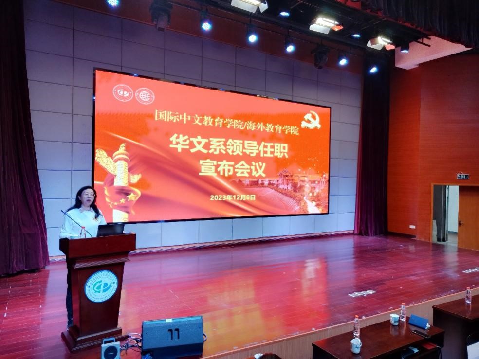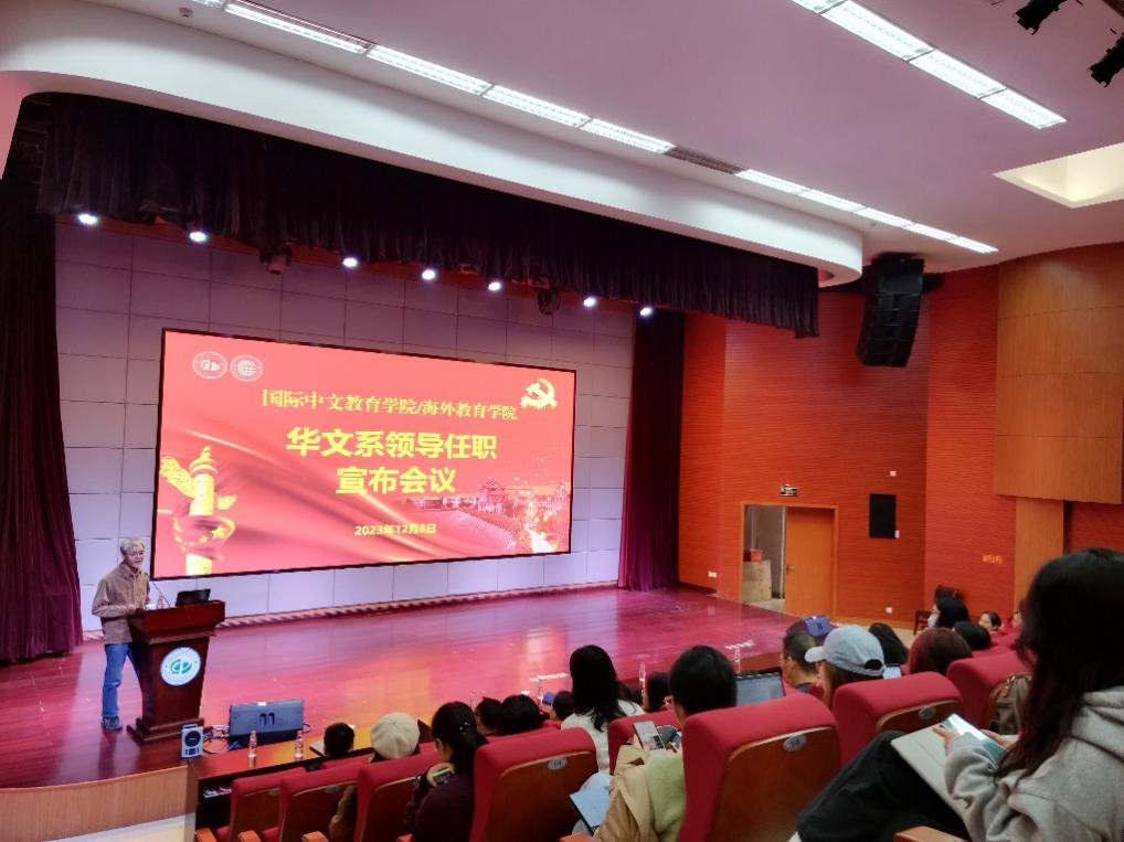 12月8日上午,国际中文教育学院/海外教育学院华文系行政领导班子任职宣布会议在翔安校区坤銮楼B102报告厅举行。全院师生参加会议。