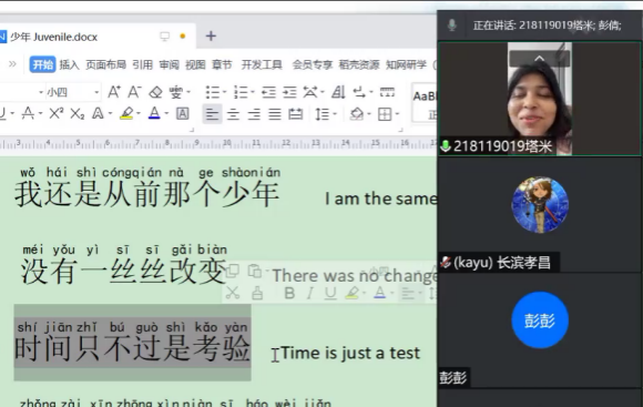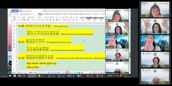 时间在欢快的气氛中流淌。原计划一个半小时的“学唱中文歌”课程在学员们的热情参与下延长至两个小时才结束,学员们依依不舍。大家纷纷向彭老师索取课程录像,以便细细回味这堂精彩的课堂,这次别样的体验。大家都十分期待,未来能以中文歌曲为桥,更好地将中文学习进行到底。