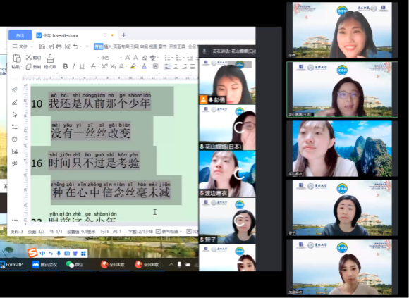 由教育部中外语言交流合作中心主办、厦门大学国际中文教育学院/海外教育学院、厦门大学中外语言交流合作中心承办的2022南强丝路系列“汉语桥”(亚洲国家)线上游学营如火如荼进行中。3月16日晚,学员们兴致勃勃地参与了一堂趣味盎然的“学唱中文歌”课程。两个小时的中文课堂笑声不断,热闹非凡。