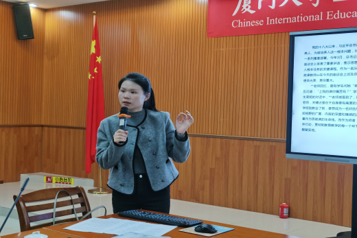 为更好提升学院新闻宣传工作水平,12月11日上午,国际中文教育学院/海外教育学院新闻专题培训讲座在翔安校区坤銮楼C104会议室举行。人文与艺术高等研究院秘书杜筠作题为“媒体融合时代下的价值传播与情感传播”的专题讲座。国际中文教育学院/海外教育学院各基层党支部委员、“先锋团校”研究生骨干培训班学员参加讲座。讲座由学院团委书记陈艺新主持。