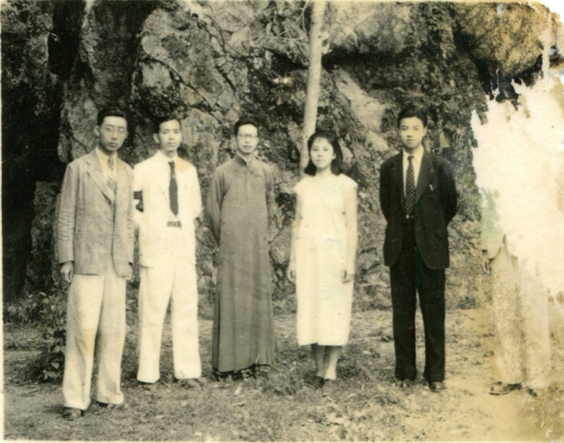 潘懋元(左二)与施蛰存(中)等师生合影留念