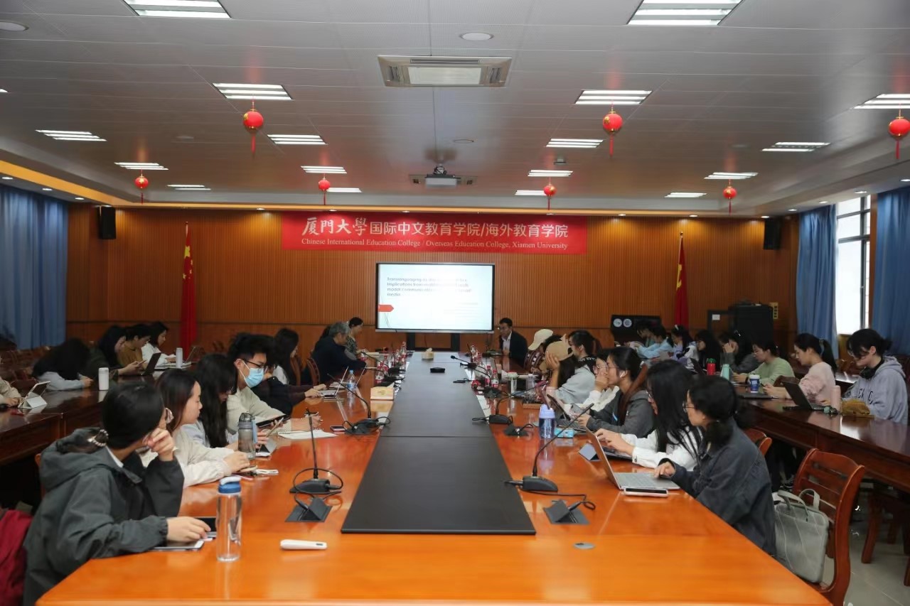 访问期间,张翼博士还为国际中文教育学院/海外教育学院的学生带来了一场题为“Translanguaging as discursive practice: Implications from multilingual and multi-modal communication in Chinese social media”的讲座。张翼用贴近生活的例子和妙趣横生、浅显易懂的语言,向学生们讲授了复杂的“超语行为”相关研究知识。