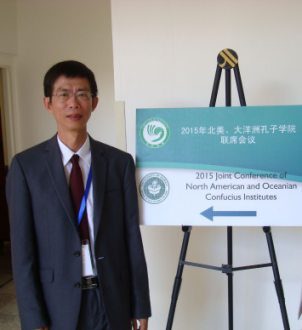 图为卢伟老师参加2015年北美、大洋洲孔子学院联席会议