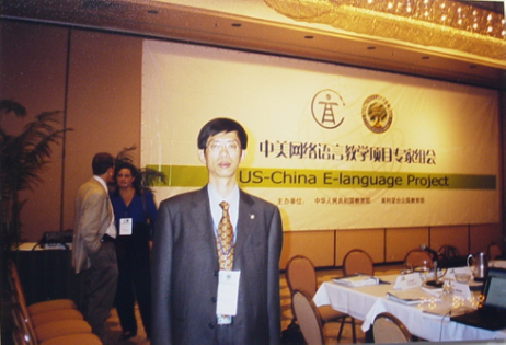 图为卢伟老师参加中美网络语言教学项目专家组会