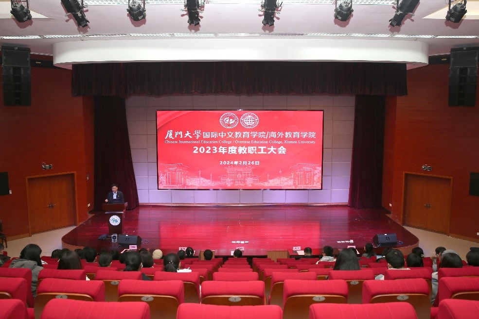 2月26日下午,厦门大学国际中文教育学院/海外教育学院2023年度二级教职工代表大会在翔安校区坤銮楼B102报告厅举行。大会由学院党委副书记林明华主持。
