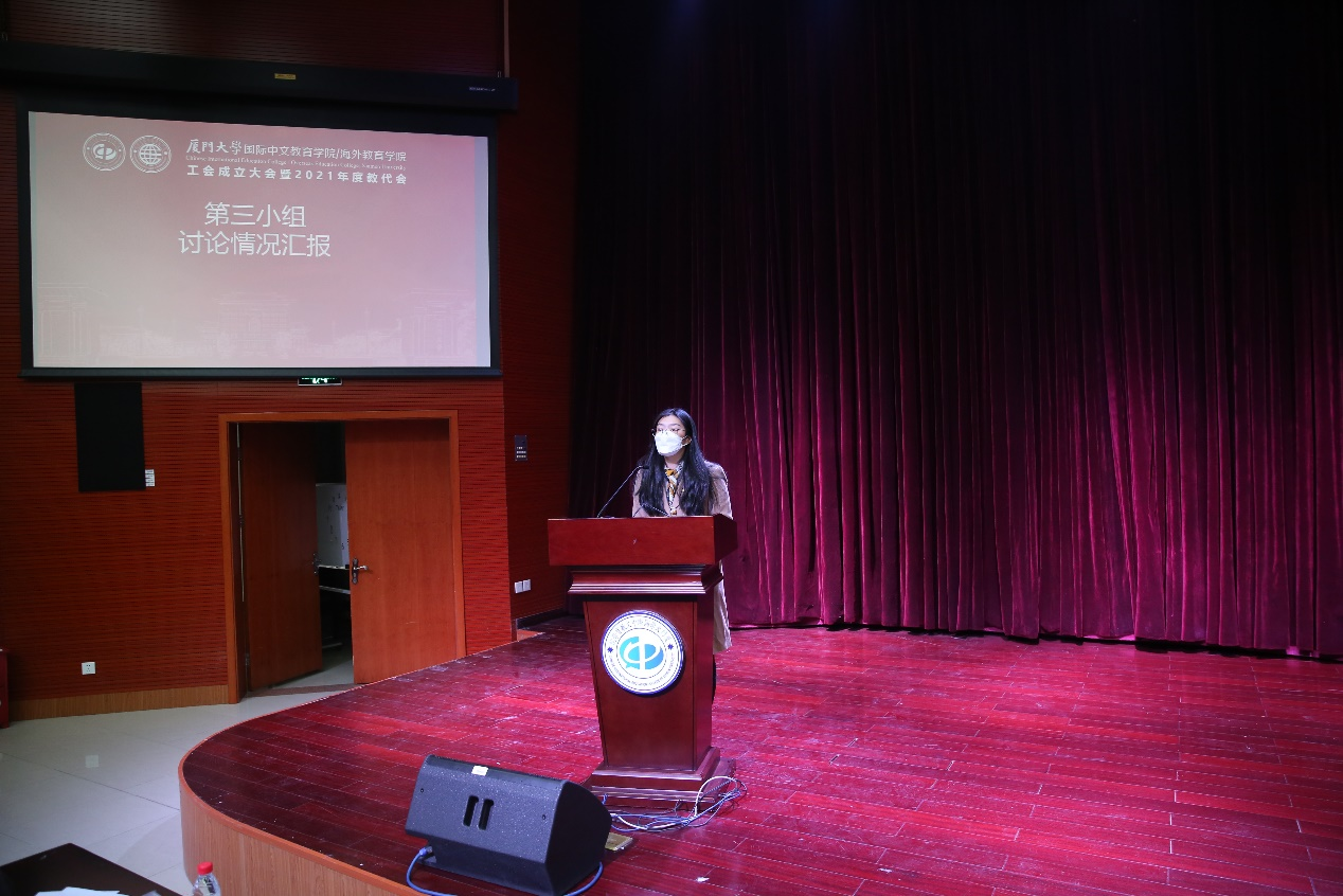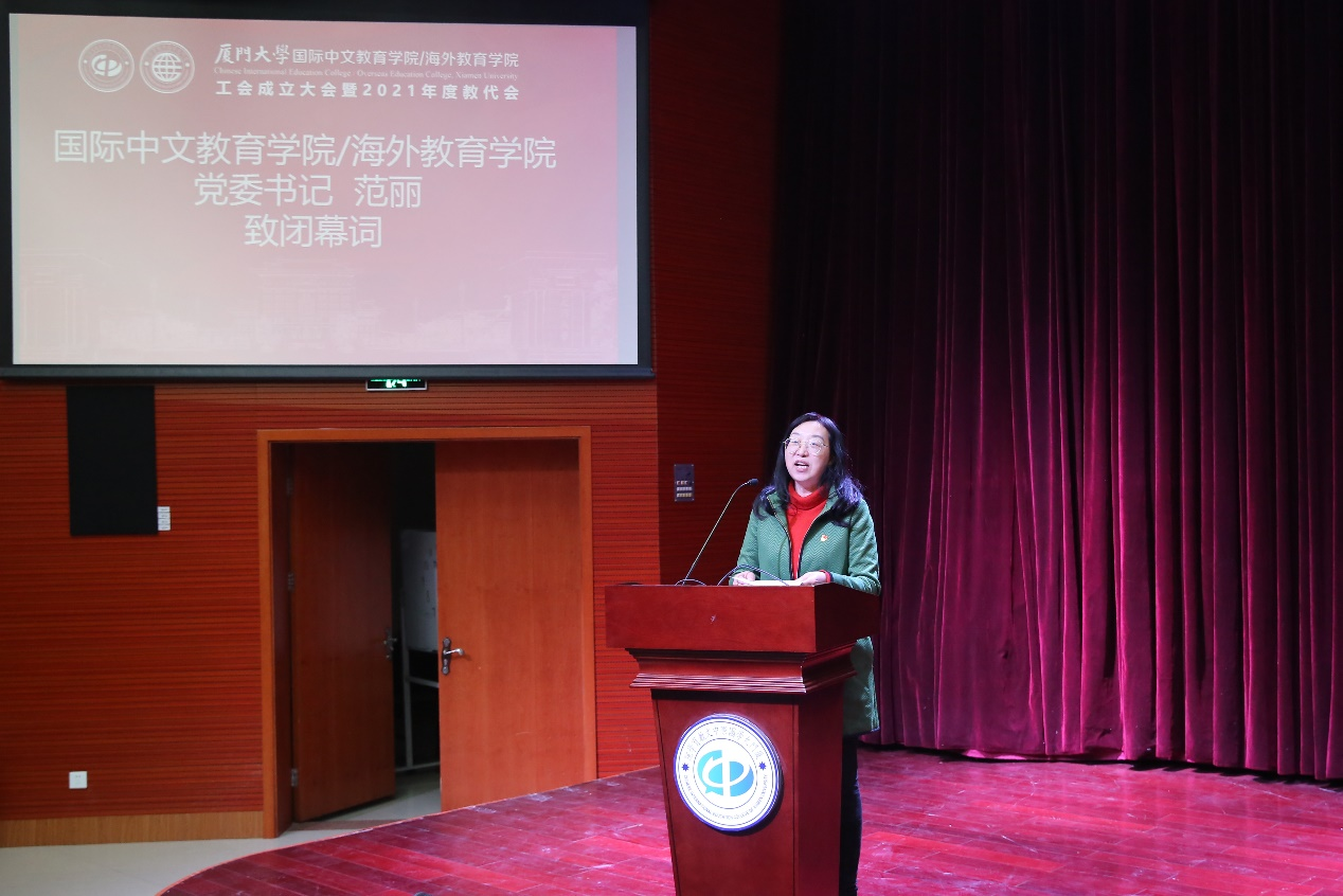 1月12日下午,厦门大学国际中文教育学院/海外教育学院工会成立大会暨2021年度教代会在厦门大学翔安校区坤銮楼B102报告厅召开。本次会议共选举出学院部门工会委员7人。大会听取讨论了陈志伟院长的2021年度工作报告、财务报告,审议了上一届工会工作报告及经费收支情况说明。会议由学院副书记吴荻同志主持。