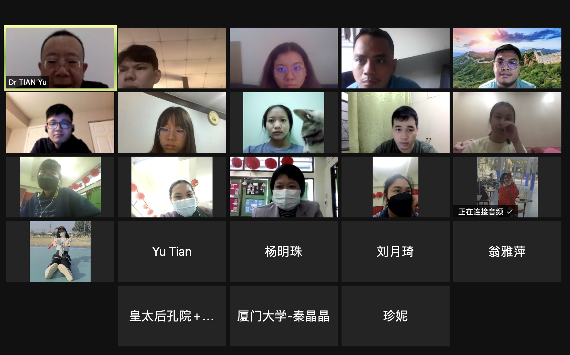 开营仪式上,田禹老师向各位学员简要介绍了厦门大学在汉语国际推广领域的取得的工作成果,鼓励师生充分发挥“汉语桥”这一平台的桥梁作用,积极学习汉语、了解中国。此外,师生一同回顾了2021“汉语桥”线上游学营和2021年海外华文教师(马来西亚)线上研习班的学习成果,表示对即将开始的游学营充满期待。
