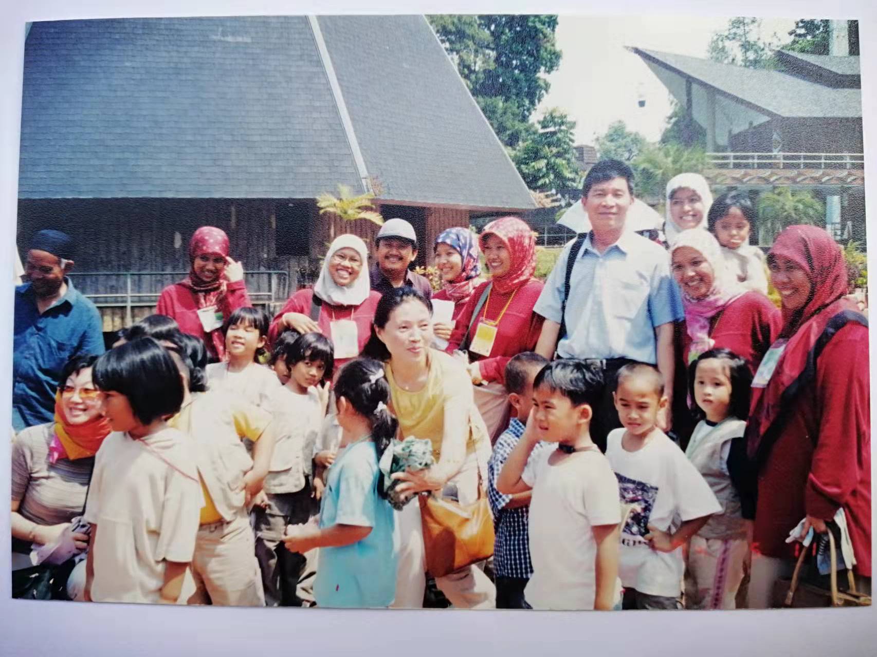 2004年访问印度尼西亚时与雅加达华文学校师生合影
