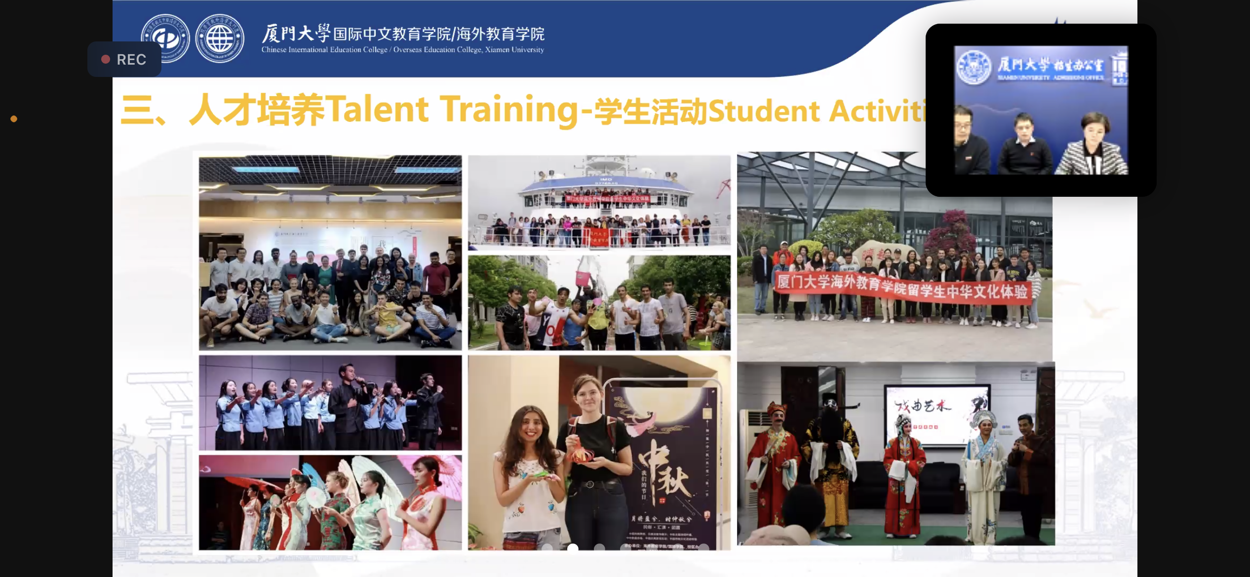 宣讲会上,我校招生办公室副主任洪镔从校园环境,学科建设,留学生活等方面全方位介绍了厦门大学的情况,欢迎更多印尼学生到厦门大学深造。随后,国际中文教育学院/海外教育学院中外语言交流合作中心副主任何冬梅,从学院发展、师资力量、人才培养、教学项目、国际合作等方面对学院进行了详细的介绍。学校还同步在线答疑,随时解答学生关切的问题。