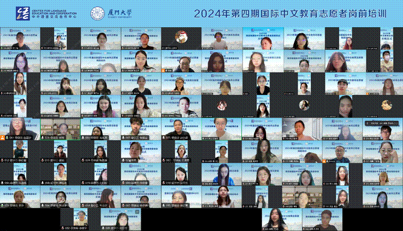 5月6日,由教育部中外语言交流合作中心主办,厦门大学承办的2024年第四期国际中文教育志愿者岗前培训顺利开班。教育部中外语言交流合作中心志愿者管理处处长周卉、项目官员阮会乔、厦门大学国际中文教育学院/海外教育学院院长陈志伟以及来自南开大学、厦门大学、上海大学、上海外国语大学、北京师范大学等全国19所院校的93名待派国际中文教育志愿者参加了本次线上开营仪式。会议由厦门大学中外语言交流合作中心副主任林琳主持。