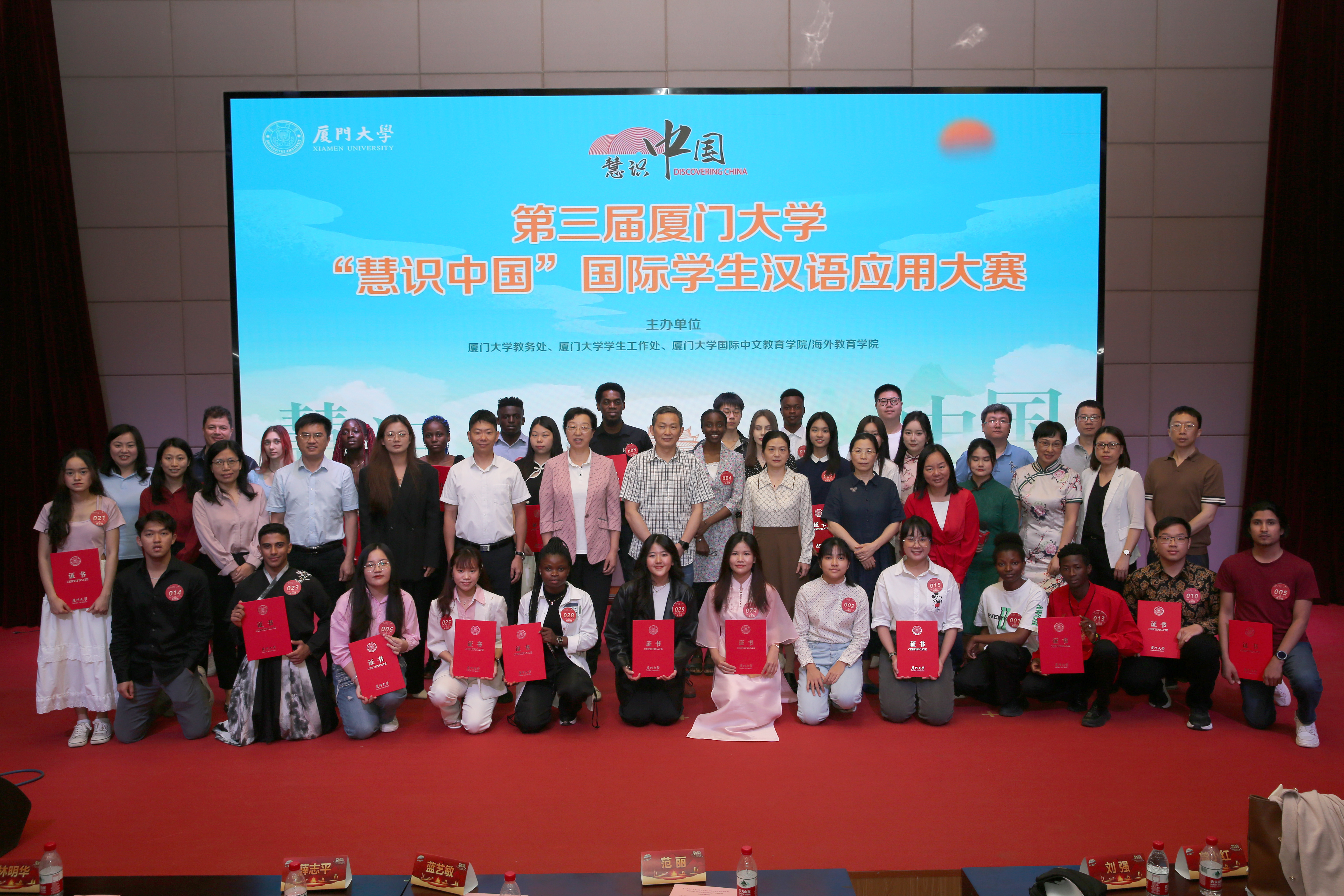 为深化中外文明交流互鉴,引导来华留学生了解、感知和探索中国文化,品中文雅韵,讲中国故事,5月17日上午,第四届“用英语讲中国故事”来华留学生组中级阶段校园选拔赛(厦门大学专场)暨第三届厦门大学“慧识中国”国际学生汉语应用大赛于翔安校区坤銮楼B102多功能厅成功举行。厦门大学国际中文教育学院/海外教育学院党委书记范丽、翔安校区办主任薛志平、学生处副处长、翔安校区学生办主任高斌、国际中文教育学院/海外教育学院党委副书记林明华、第四届“讲中国故事”组委会厦门办公室执行负责人蓝艺敏以及评委老师、指导老师和学生代表观看比赛。