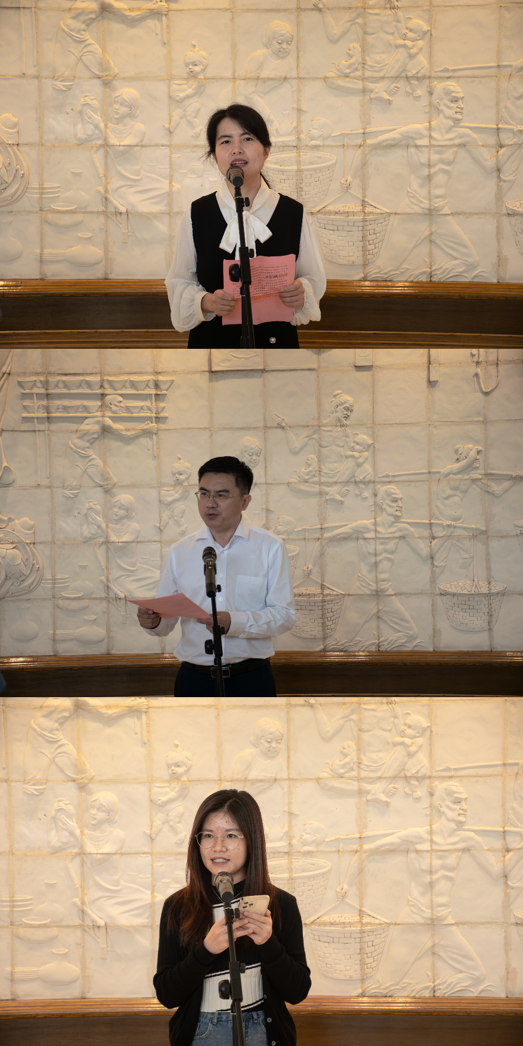 国际中文教育学院在德化陶瓷博物馆举行文化研学实践基地授牌仪式。仪式由德化县教育局黄文元督学主持。林玉萍、林明华先后致辞。林玉萍对师生一行表示热烈欢迎。她指出德化县作为世界瓷都,文化历史悠久。德化陶瓷博物馆作为弘扬中华优秀传统文化的一大平台,具有独特的文化优势,希望能以本次合作为契机,充分发挥双方特色,提高影响力,打造文化传播新高地。并期望大家能够走进德化,共赴美好之约。林明华简要介绍厦门大学和国际中文教育学院/海外教育学院的基本情况,表示国际中文教育学院历来注重中华文化的浸润和涵养。德化陶瓷名扬中外,具有深厚的文化底蕴。此次共建基地,不仅为学院人才培养提供了文化资源,也将进一步促进学生弘扬中华文化,讲好中国故事,传播好中国声音。越南留学生梅怀心作为国际学生代表发言,她提到中国瓷器是中华文化的瑰宝,希望能借此机会更加了解瓷器,感受中国瓷文化的魅力。县文旅局副局长陈文伟与林明华进行授牌交接仪式,未来双方将在文化研学、瓷器文化传播等领域开展更为密切的交流与合作。