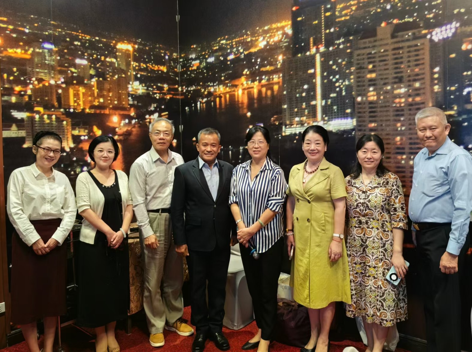 5月19日上午,陈志伟院长一行访问泰国校友会,与校友会现任主席张永青、秘书长曾心,以及候任主席李文海进行座谈,双方共同回顾了校友会的发展历程,校友会对学校发展和国际化建设做出的贡献,陈志伟院长对校友会给予我校孔子学院建设方面的支持与帮助表示衷心感谢,同时双方还就开展“中文+中医”等合作项目的可能性进行商谈。