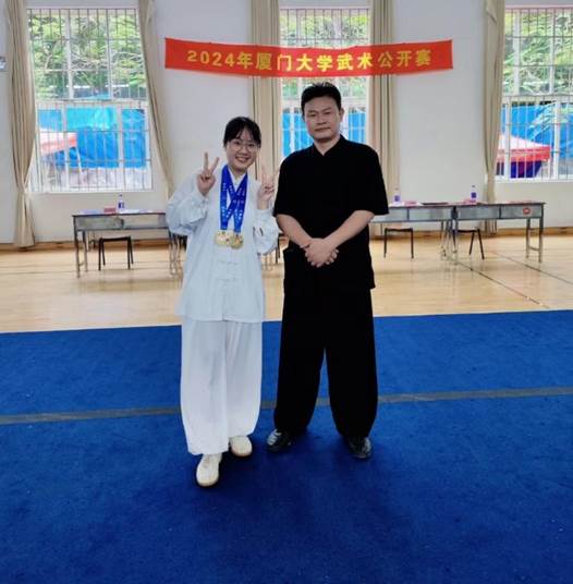 周惠玲表示,自己一直对太极武术有浓厚的兴趣,平时利用闲暇时间不断学习和练习。此次比赛能够获奖,她感到非常荣幸和自豪,同时也感谢学校提供的平台和老师的培养与支持,并特别提到学院夏长仓老师的指导。值得一提的是,在2023年厦门大学武术套路邀请赛中,周惠玲同样获得了女子太极拳冠军。此次可谓卫冕。