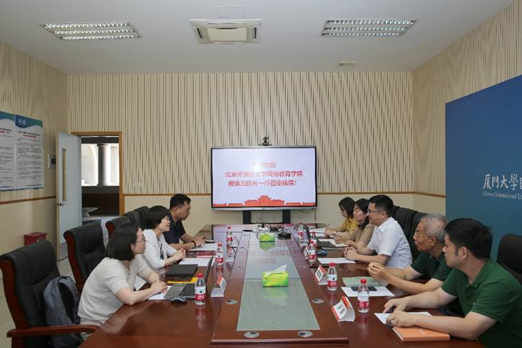 6月21日上午,北京外国语大学网络教育学院院长唐锦兰一行来访我院。学院党委副书记林明华会见来宾,学院招生科负责人黄建军、华文系副主任郭建花、华文系党支部书记、远程教学部主任洪镔、教学秘书洪玲等参加座谈交流。
