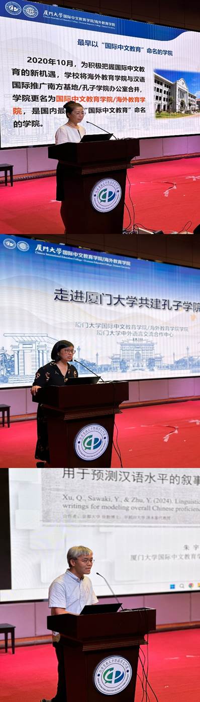 2023级硕士研究生颜诗晓作为在校生代表发言,她分享了自己参加夏令营的经历和目前在厦门大学的学习感悟,并鼓励各位营员不负韶华,怀揣期待与热爱,珍惜和享受此次夏令营时光。来自南开大学的许汪洋、成都中医药大学的肖宋词两位同学作为夏令营营员代表发言,她们表达了对国际中文教育事业的热忱,并期待在夏令营期间能与老师们进行学术交流,与同学们相互了解、增进情谊,一同采摘丰收之硕果。
