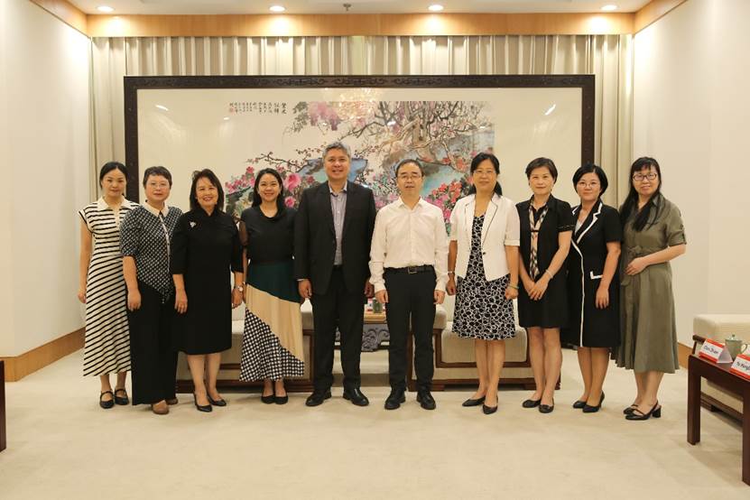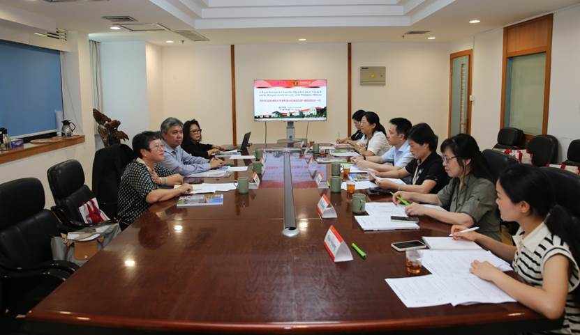 7月4日,菲律宾大学迪利曼分校校长埃德加多•威斯坦(Edgardo Carlo L. Vistan II)率团访问厦门大学,我校校长张宗益会见来宾。埃德加多•威斯坦校长夫人玛丽亚•威斯坦(Maria Francia Fatima Vistan)、菲律宾大学孔子学院外方院长陈璐(Lourdes Tanhueco Nepomuceno)、国际中文教育学院/海外教育学院院长陈志伟、海外办学事务办公室执行主任兼国际合作与交流处副处长(主持工作)余宏波、菲律宾大学孔子学院中方院长施雪琴、候任中方院长智晓静等参加会见。