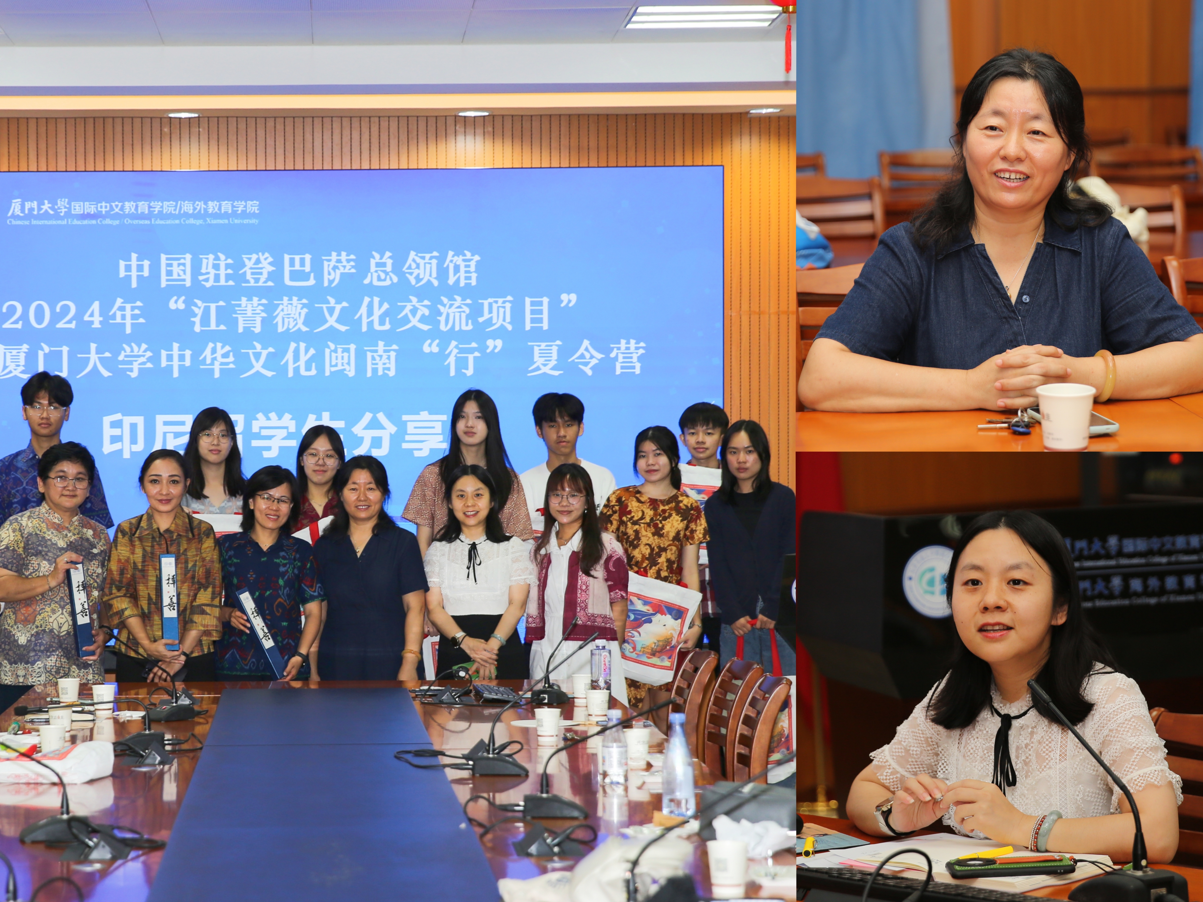 借此次来访契机,我院为“江菁薇文化交流项目”暨厦门大学中华文化闽南“行”夏令营学员举办专场留学宣讲活动。我院华文系副主任郭建花、招生科彭丹、全体印尼营员和带队老师出席会议。郭建花介绍了学院的办学特色和学科建设,彭丹介绍了学校和学院的研究领域、师资力量、人才培养、奖学金申请等,学院印尼留学生分享了在厦大学习的感悟。三位印尼带队老师介绍了各自学校的中文教学情况。此次分享会让印尼学生对我校和我院有了更深入全面的了解,期待他们未来能有机会来厦大学习。