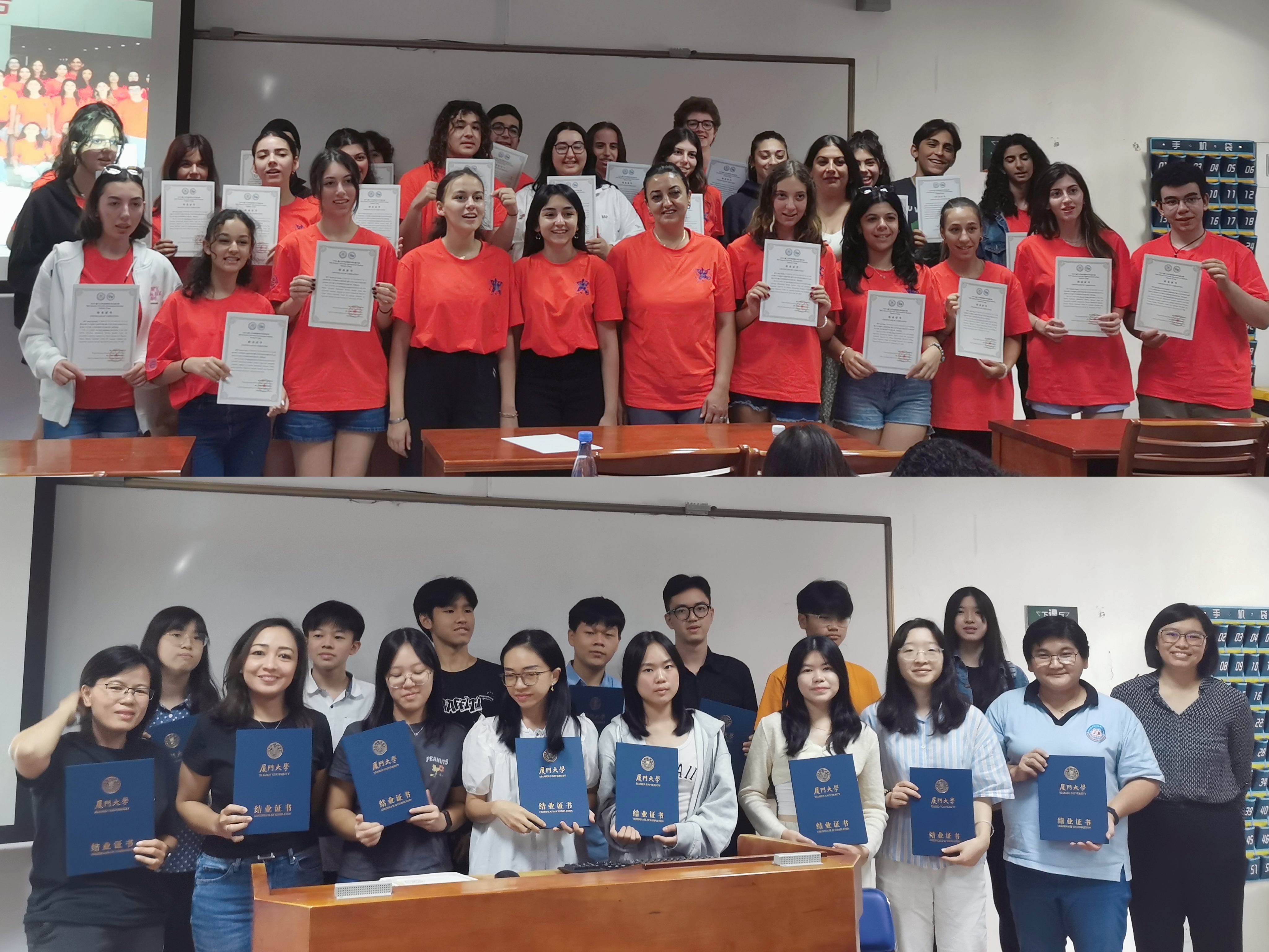 7月11日上午,夏令营结业仪式在坤銮楼B211举行。一段视频记录了夏令营的点点滴滴,获得了大家的阵阵掌声。相聚的时光转瞬即逝,但丰富多彩的活动将随着视频永远留在大家的记忆中。随后,厦大语合中心副主任林琳为营员们颁发了结业证书。