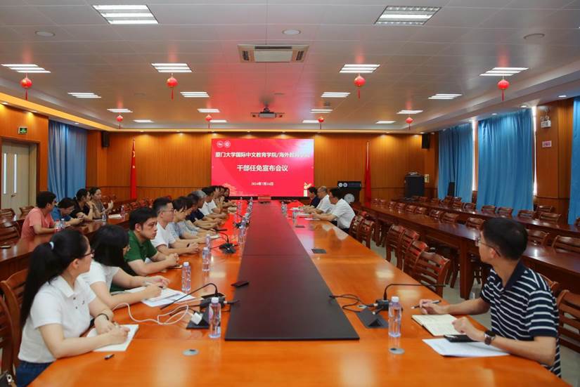 7月16日,厦门大学国际中文教育学院/海外教育学院干部任免宣布会议在翔安校区坤銮楼C104会议室举行。校党委常务副书记林东伟,校党委常委、组织部部长、统战部部长孙理出席会议。学院党政领导班子成员、系主任、教工党支部书记、科级干部和教职工代表参加。会议由孙理主持。