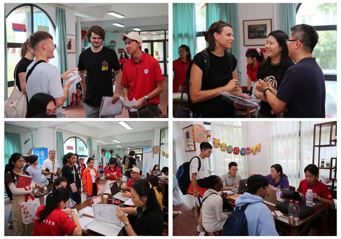 为确保迎新工作顺利开展,学院提前部署、精心策划,组建一支中外学生志愿服务队。“校门引导、行李寄存、新生签到、资格审核、信息录入……”,迎新当天,志愿者们各司其职,通过语言优势为新生同学们提供耐心、细心、贴心的服务,帮助新生熟悉校内环境,适应大学生活。学院还在迎新注册点设有茶水休息区和师生交流区,为远道而来的家长和同学们提供舒适的入学体验。