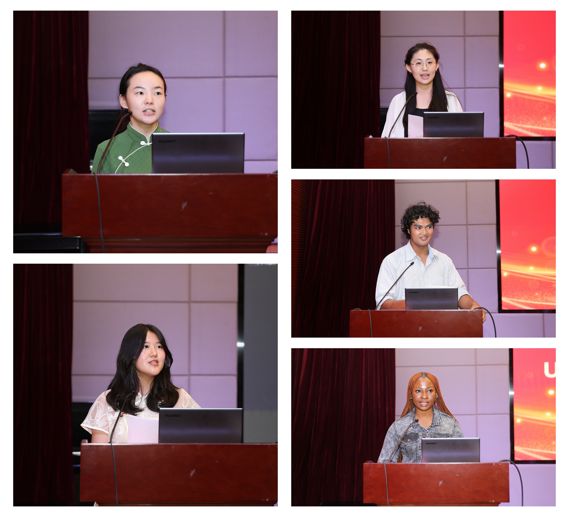 2024级国内研究生李瑶与国际学生安姝瑶、罗治成作为新生代表相继发言。李瑶表达了对厦大的热爱与期待,立志成为知识的探索者与中华文化的传播者;来自尼日利亚的安姝瑶分享了自己学习汉语的心路历程,希望能够更加深入地了解和理解中华文化;来自美国的罗治成则表达了自己对中国历史、文化的热爱及学习汉语的期待与兴奋,呼吁大家相互学习、彼此支持、共同成长。