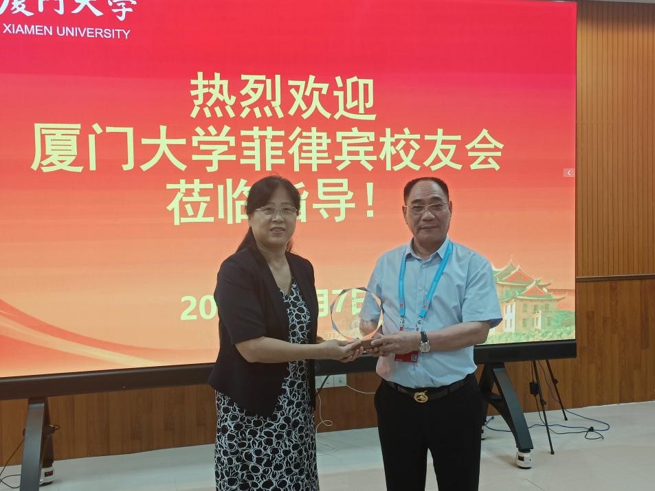 陈志伟院长向菲律宾校友会曾佳龙会长赠送纪念品