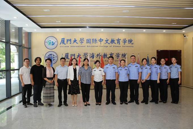 9月12日上午,厦门市公安局出入境管理支队支队长马翠琳、翔安公安分局党委委员、政治处主任江华达、香山派出所所长洪德尧一行到访厦门大学国际中文教育学院/海外教育学院,就学院留学生的教育、管理和服务等工作展开调研。国际中文教育学院/海外教育学院党委书记许美霞、院长陈志伟、党委副书记林明华以及学院行政、辅导员代表参加调研。