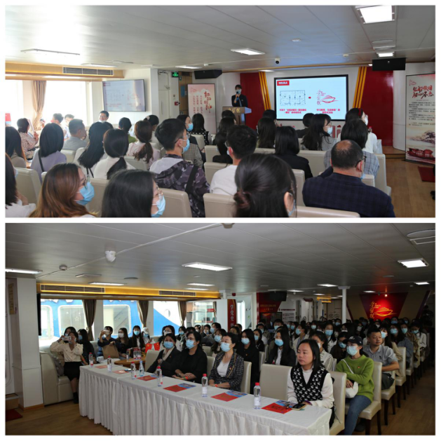 下午三点整,“学习号”准时起航,全体师生党员正式开启了本次别开生面的红色学习之旅。首先,“学习号”为大家举办了简短的开班仪式。引导员进行了船舶安全演示,并简单介绍了本次的活动流程以及“学习号”的功能分区。
