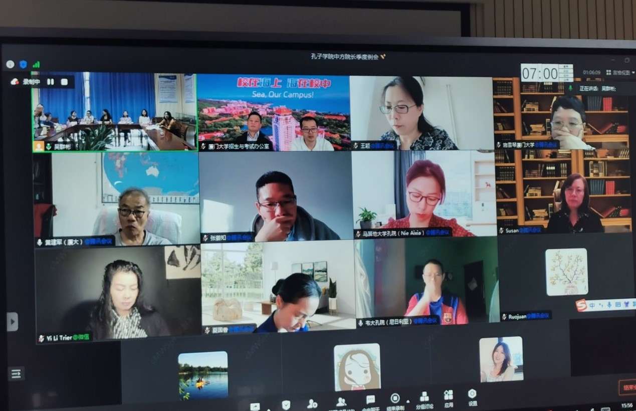 厦门大学共建孔子学院中方院长例会制度旨在搭建我校与国外共建孔子学院/中心常态化沟通桥梁,有效衔接推动各项工作落地,强化对赴外人员关心关怀,自2022年6月起,至今已举办十四次。