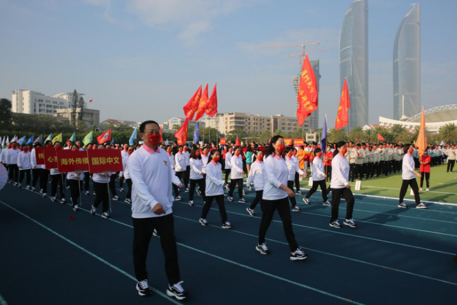 11月5日,第56届学生田径运动会、第20届教职工运动会、第30届老年人体育健康大会开幕式在思明校区演武运动场隆重举行。国际中文教育学院/海外教育学院积极参与,共同组成学院代表队方阵参与入场开幕式,充分展现学院的风采和凝聚力。