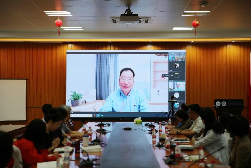 11月13日下午,国际中文教育学院/海外教育学院在坤銮楼C104举办科研团队建设推进会议。学院党委书记许美霞,院长陈志伟,科研团队负责人潘超青教授,朱宇教授以及张灵芝副教授和团队成员出席会议,北京语言大学国际中文教育研究院院长、教育部人文社科重点研究基地主任吴应辉及外派专职教师通过线上参加会议,会议由陈志伟主持。