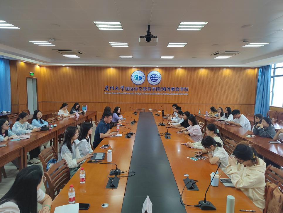 10月28日下午,国际中文教育学院/海外教育学院在翔安校区坤銮楼A104会议室召开全院学生干部大会。学院党委副书记林明华出席会议并讲话,团委书记白沚凡做了近期工作布置。