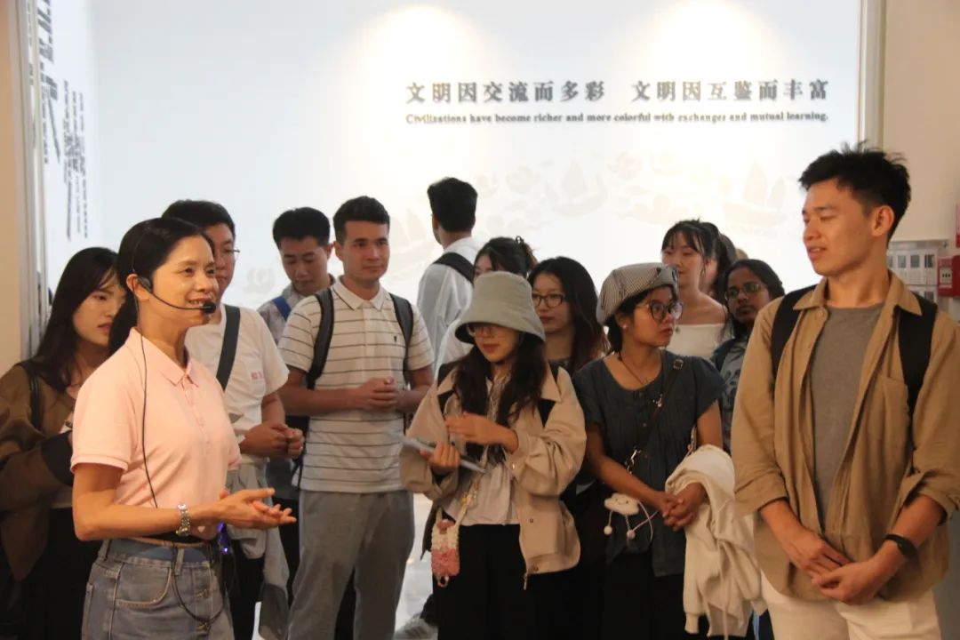 一行人参观了泉州非物质文化遗产馆,在这里,同学们不仅能看到非遗项目的实物展示、展板文字图片介绍、多媒体演示,还能通过非遗传承人的活态展演展示,全方位感受非遗魅力。同学们沉浸在泉州悠久的文化传统之中,观赏了活灵活现的泉州传统布袋木偶、细致入微栩栩如生的木雕和石雕、精细雅致的传统瓷器和璀璨夺目的彩灯等,也体验了中国传统剪纸、南音以及戏剧等各方面的传统文化。精彩丰富的展区,让大家亲身体验到非遗文化的多样性和丰富性,深刻地理解了中华文化的博大精深和独特魅力,也增进了国际学生对中华文化的认同感和归属感。