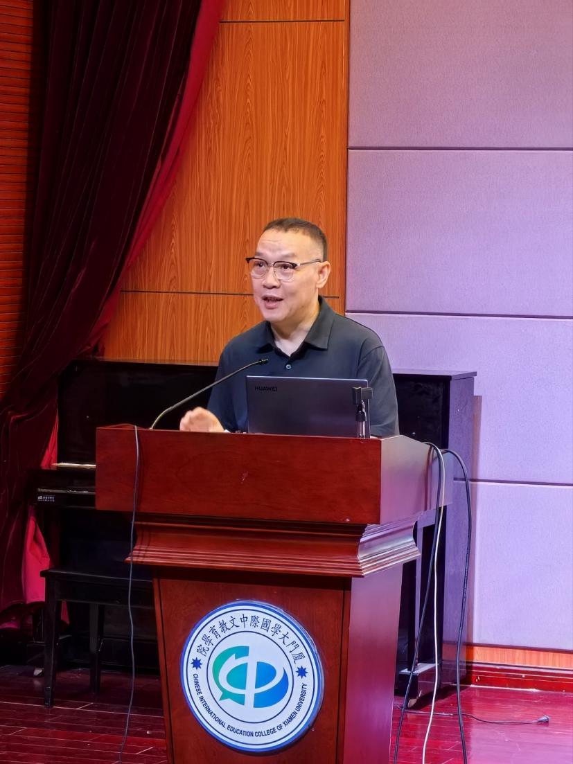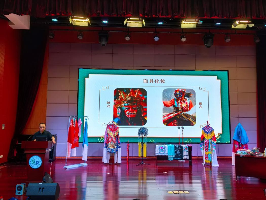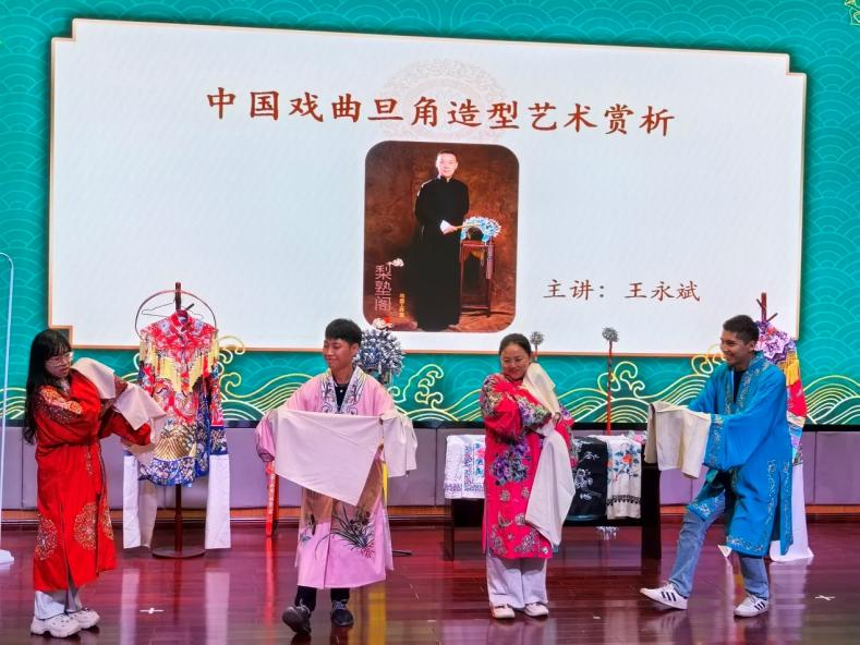 11月22日上午,国际中文教育学院/海外教育学院在翔安校区坤銮楼B102多功能厅举办第七期“文化大讲堂”,《梨塾阁》戏曲艺术工作室创始人王永斌、保定老调剧团办公室主任赵利元、保定艺术剧院老调剧团花衫、刀马旦演员刘瑞霞应邀出席。王永斌带来了一场题为“中国戏曲旦角的造型艺术”的精彩讲座,为同学们传授了戏曲容妆的基础知识以及旦角容妆的实践操作。