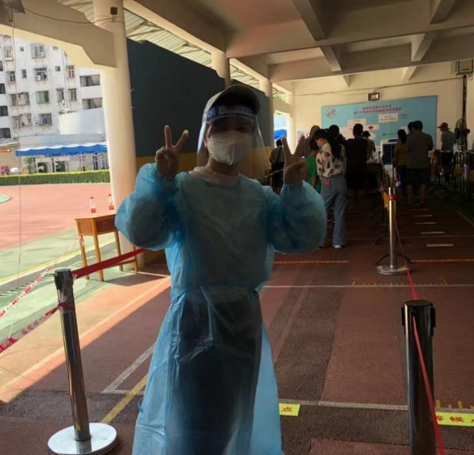 (学院研究生邓施懿、杨点、韦炜、孟雨彤、吴柯颖、潘嘉仪、李佩怡、王娴、黄玥霖参加校区核酸检测志愿服务)
